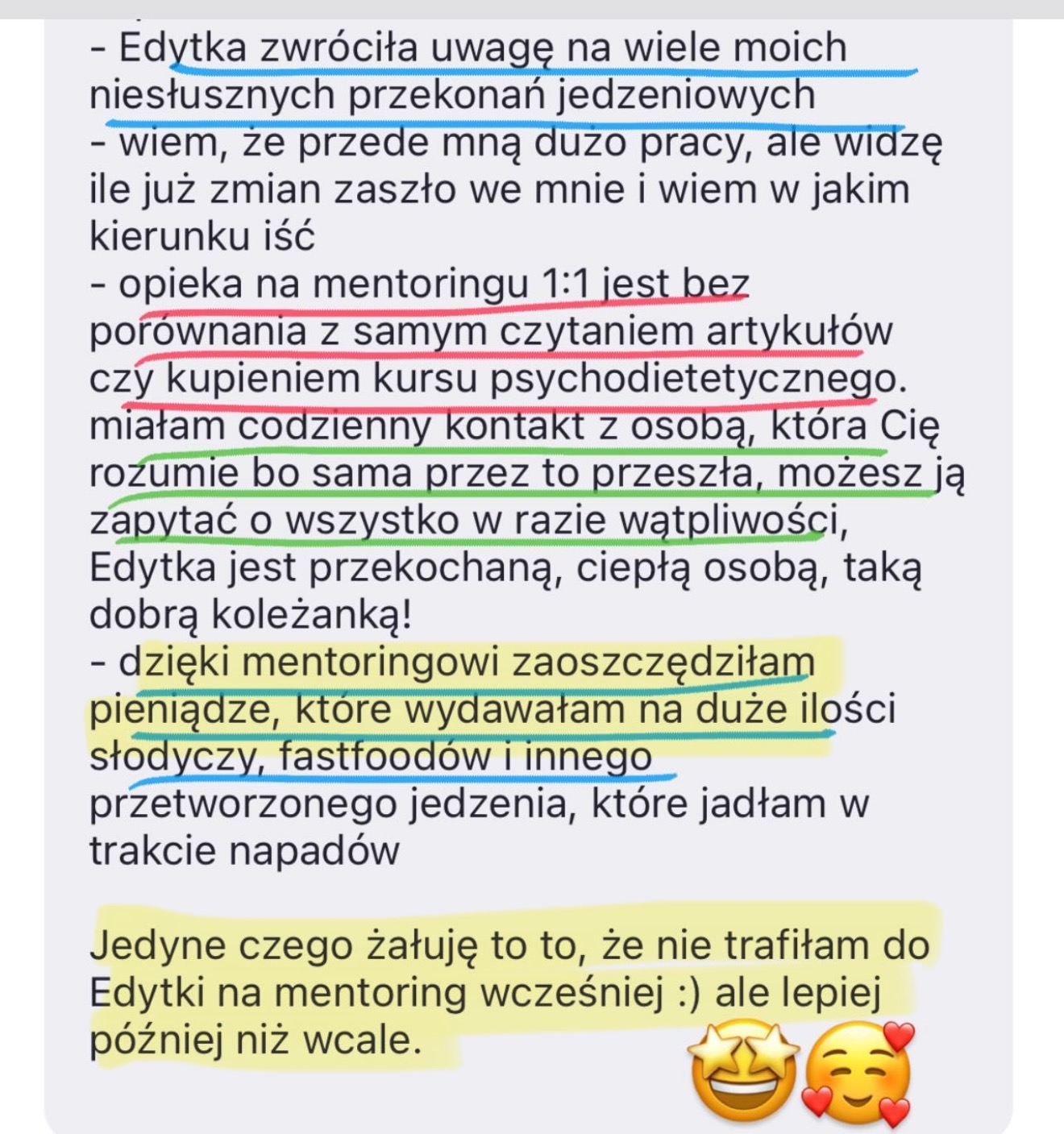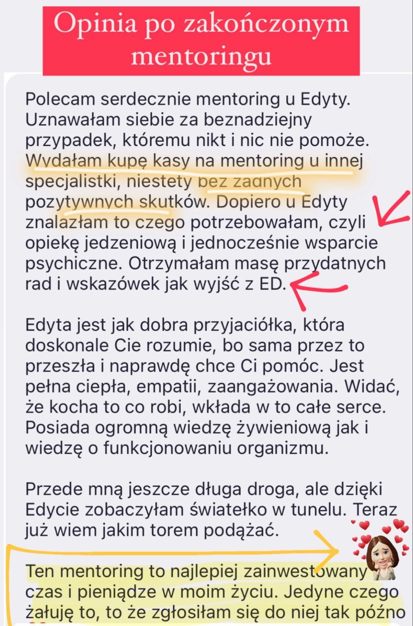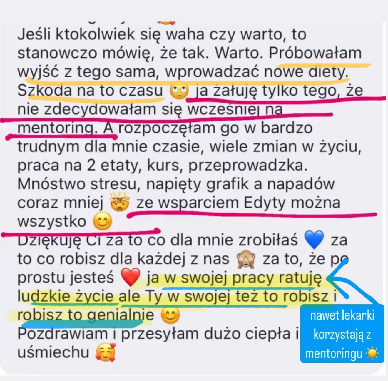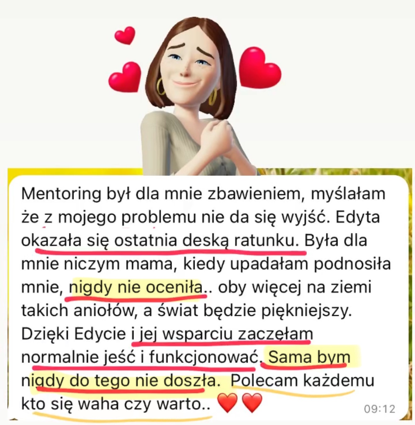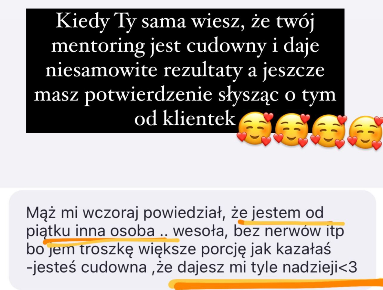 Mentoring „WOLNA OD NAPADÓW” to nie teoria, tylko realny proces, który pomógł już setkom kobiet odzyskać kontrolę i wolność jedzeniową. Ponad 300 kobiet przeszło przez ten wspierający program. Każda z własną historią, bólem i punktem wyjścia.