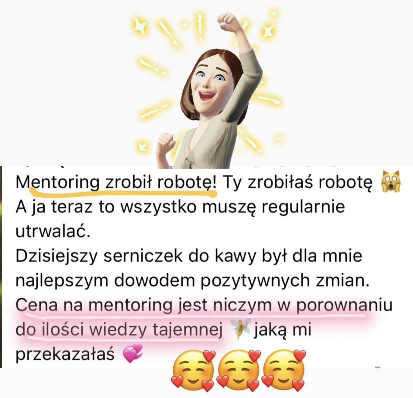 Jeśli masz do mnie jakieś pytanie odnośnie szczegółów współpracy lub jesteś zdecydowana na mentoring – napisz do mnie.